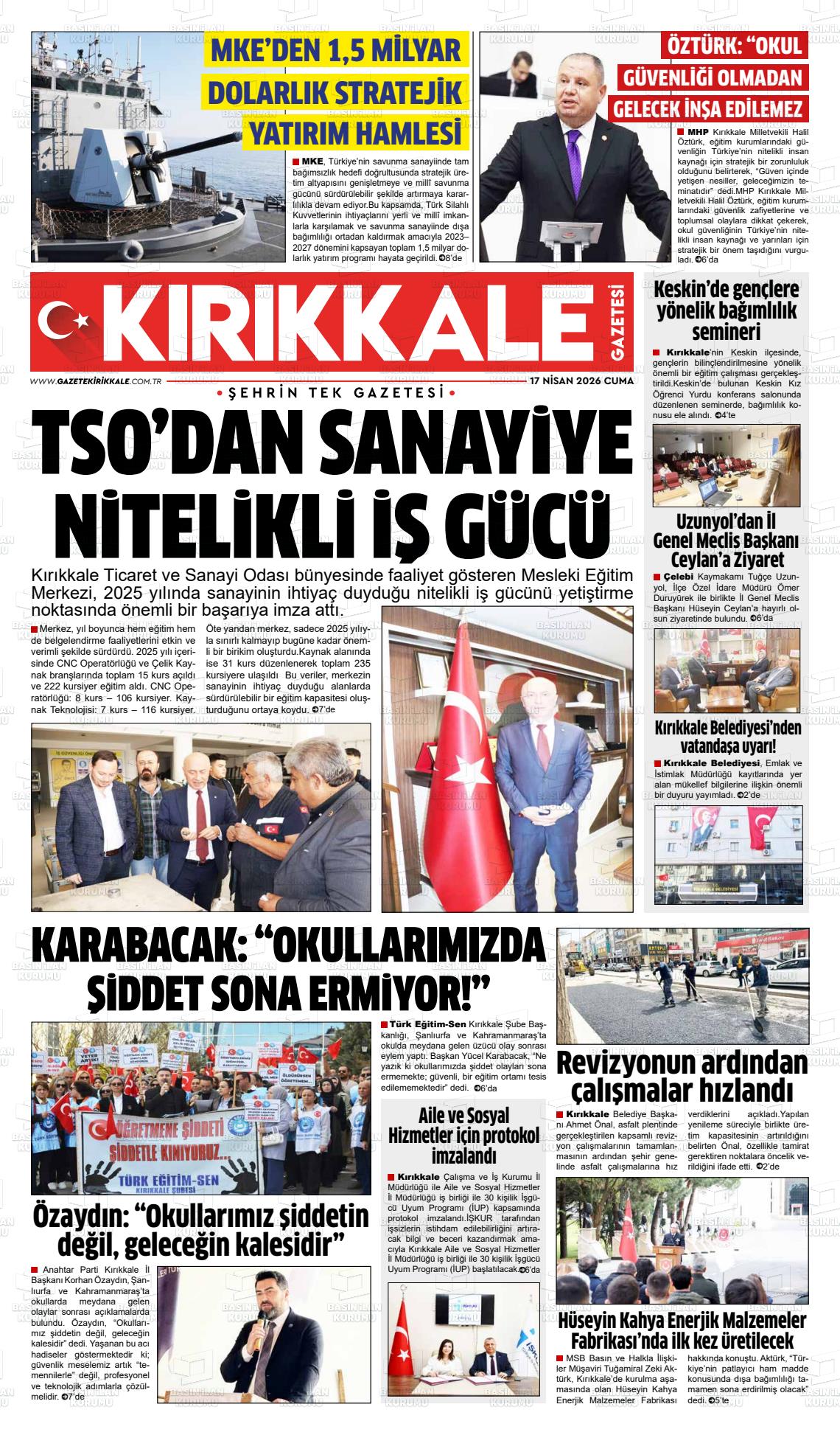 Kırıkkale Yerel Gazeteleri 17 Nisan 2026, Cuma Günü Manşeti